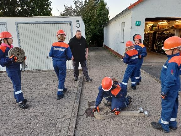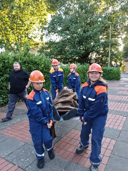 Am 23. September traf sich die Jugendfeuerwehr zu einer weiteren kleinen Übung zum Thema Erste Hilfe. Dieses Mal stand die Trage im Mittelpunkt. Wie wird die Person auf die Trage gelegt, wie positioniert man sich, in welche Richtung wird gegangen und wie wird die Person richtig fixiert und betreut? Das waren die Ziele der Übung. Anschließend ging es um das Absichern einer Unfallstelle. Da dieses Thema sehr umfangreich ist, werden wir uns in den Wintermonaten näher damit befassen. Zum Schluss zeigten wir den Jugendlichen die richtige Rolltechnik, damit die Schlauchkupplungen perfekt aufeinanderliegen. Es hat super funktioniert und erste Erfolge wurden sichtbar.