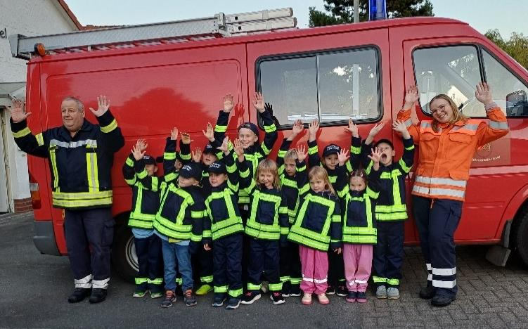 Am 30. September traf sich die Kinderfeuerwehr, um Neues über die Feuerwehr zu lernen. Das Thema war heute die Wasserzufuhr/Leitung durch das Setzen des Standrohrs, das Legen eines C-Druckschlauchs zum Verteiler und das Umsetzen mit drei D-Druckschläuchen und drei D-Mehrzweckstrahlrohren. Die Kinder zeigten sehr hohe Lernbereitschaft und Interesse an den Gerätschaften. Natürlich durften die Befehle „1. Rohr Wasser marsch” und „1. Rohr Wasser halt” nicht fehlen. Im Anschluss wurden stolz die Kinderflammen 1 und 2 verteilt. Herzlichen Glückwunsch an alle, die bestanden haben. Das habt ihr großartig gemacht!
